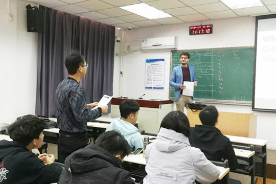 今天我们迎来了西英格兰大学的老师为我们带来的一节纯英体验课。课程内容是关于批判性思维(critical thinking),旨在鼓励学生在以后的生活中不要轻易就被眼前看到的东西所迷惑,要用辩证的眼光考虑更多的细节并且结合自己的所需来做*后的决定。