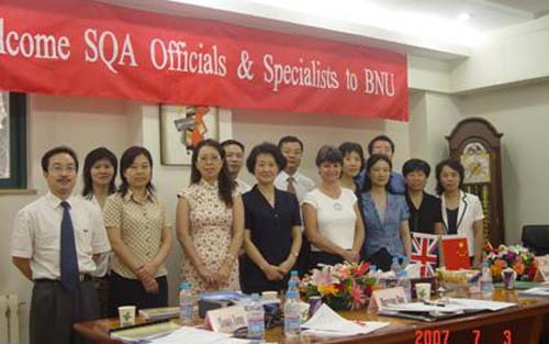 另外,外审官员还就SQA协调员和内审员如何与SQA保持不间断的联系、学生课业与考试资料的登记保管制度、学生的申诉程序等诸多方面进行了审查,并对我院 的前期工作和申请文件给予了充分肯定。后,Lynda Lamont女士认为,项目中心的内部管理制度、管理人员资质与水平、教师资质与水平以及学生课业质量保障,完全达到SQA项目中心的要求,并建议SQA 教学委员会给予北京师范大学HND项目中心的资格认证,详细、正式的书面评估报告将由SQA教学委员会反馈给我院。
