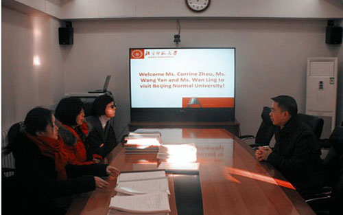 2013年1月7日,苏格兰学历管理委员会(SQA)的外审员周勤、王岩、万琳等三位老师前来北师大HND中心进行专业课外审工作,本次外审得到了HND中心各部门、教师和同学们的大力支持,保*了此次审查工作有序有效地进行。外审开始前我  校HND项目中心的卓举纲主任等领导就HND课程的教学工作与外审员们进行了座谈交流。
