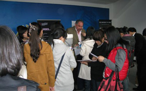 图:英国赫尔大学老师给同学们耐心的解答留学问题