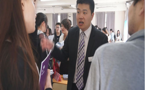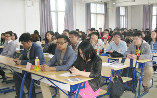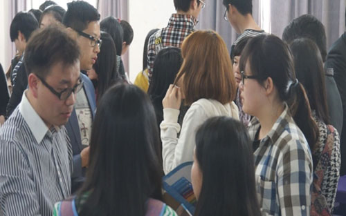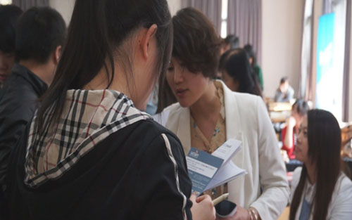 讲座之后是外方院校展会和答疑的时间,此次受邀来到现场的外方院校有约克圣约翰大学、赫尔大学、德蒙福特大学、朴茨茅斯大学等,同学们可以根据自己的需要向院校负责人当面咨询。11级毕业班的同学们大多申请到了学校,他们更多是咨询留学手续具体流程以及英国学校的详细情况。外国院校的老师们耐心的为同学们解答疑惑,提供建议。