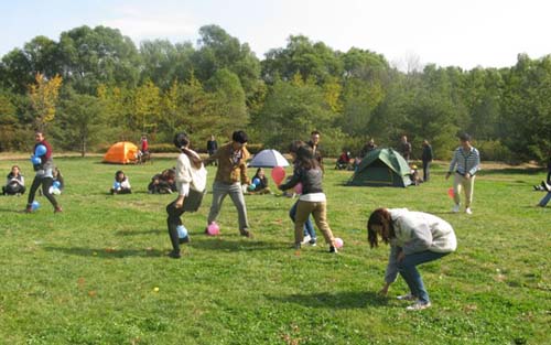 归童真,放飞心灵,紧张的学习之余,北师大HND 13级学生于2013年10月19日早8:00怀着期待和喜悦的心情坐上通往奥林匹克森林公园的大巴,经过一个多小时的车程后,终于到达了目的地——奥林匹克森林公园。