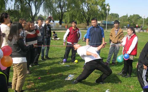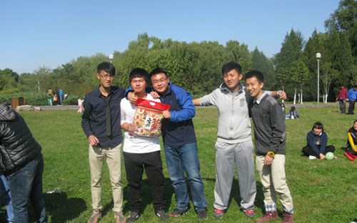 参加此次秋游活动的有:HND学管部李伟群主任、各班班主任老师和全体13级同学。在这落叶纷飞,秋兰飘香诗意浓浓的季节,同学们纷纷拿起相机,留下属于自己的回忆。 林木葱茏,黄叶红叶交相辉映,煞是好看,且正值早上薄雾蒙蒙,轻散林间,更添飘渺悠远之感。 伴着拂面的秋风和温暖的阳光,同学们三三两两散开,各自开始游玩,散步、游湖、观景。中午11:00温 热的阳光洒向地面,大家团团围坐在草坪上做起了游戏,在“三只腿”游戏中,高呼声、叫喊声震耳欲聋,高潮迭起,争夺冠军。“踩气球”同学们大展身手,积极 攻击“敌方”,霸气十足。活动中,大家满心欢喜,在活动中相识相知,同样,在活动中也体现了同学们团结一心,可爱活泼的一面。