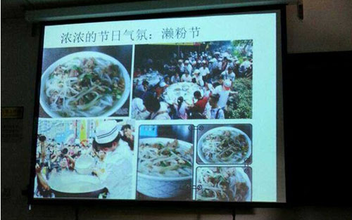 图:同学们争先介绍家乡美食