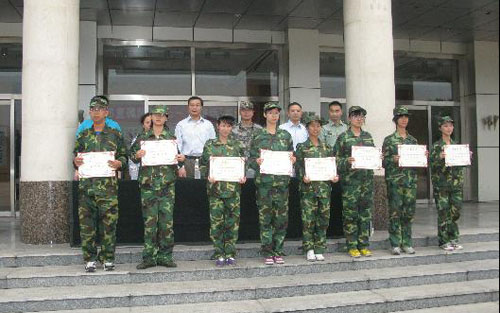 图:部队给军训优*学员颁发荣誉证书