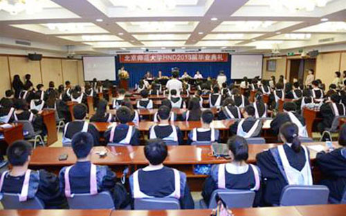5月28日上午十点,北师大2013届HND毕业生典礼在京师大厦隆重拉开序幕,此次典礼由北师大继续教育与教师培训学院副院长曾文艺主持,到场的领导有北师大继教院院长包华影,副院长韩冰、黄文峰,副书记张林、HND中心主任卓举纲等学院领导,另外,HND中心的各位老师及部分毕业生家长也前来参加了这次隆重的毕业典礼。