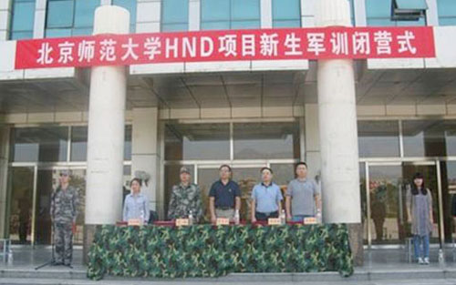9月21日下午1点,北京师范大学HND项目2013级新生军训闭营仪式暨成果汇报演出在部队训练操场上隆重举行。出席此次大会的有北京师范大学继续教育与教师培训学院副院长曾文艺、北师大HND项目中心主任卓举纲、学管部主任李伟群、部队领导、2013级各班班主任以及全体军训教官和2013级全体同学。