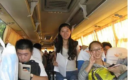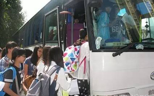 图:新生乘车前往军训基地