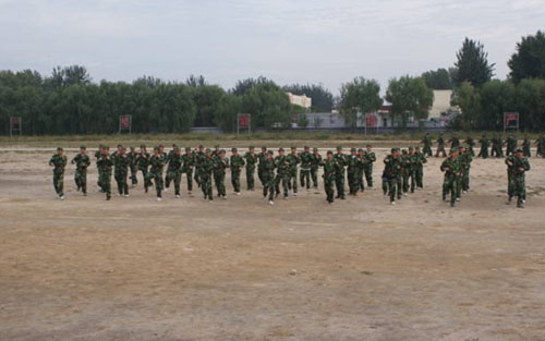 9月27日,历时七天的北京师范大学英国高等教育文凭项目2008新生军训画上了圆满句号,下午1时闭营仪式暨成果汇报表演大会在北京武警*一师训练基地操场隆重举行,出席大会的有北师大继续教育与培训学院副院长曾文艺、HND项目部主任卓举纲,负责这次军训的北京武警*一师训练基地解林江主任、政治部刘 刚主任和带训教官及2008级全体受训同学。