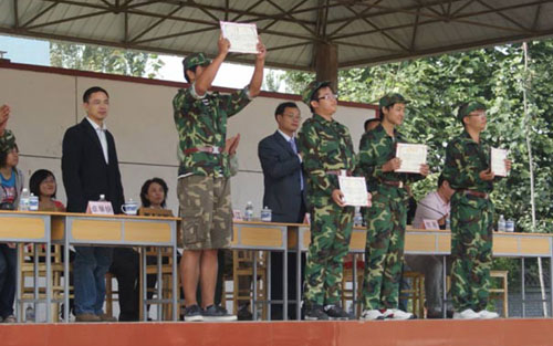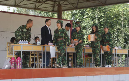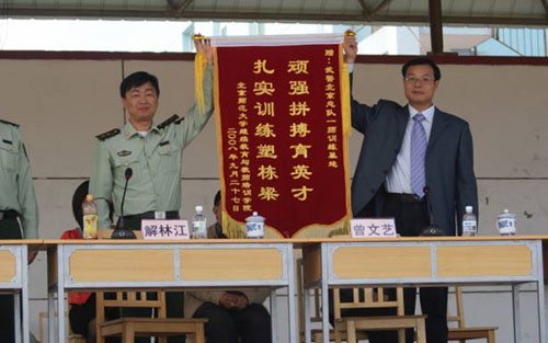 后,曾文艺副院长做了重要讲话。他代表学院全体师生对这次军训的圆满成功表示热烈的祝贺!向为我院军训付出辛勤劳动的教官表示衷心的感谢!他希望同学们 把军训当作大学生活新的起点,学会保持坚持,继续保持军训的后效应,保持军训中的热情、温度和强度,把在军训中养成的遵守纪律,服从命令,一切行动听指挥 的良好作风带到今后的学习、生活之中,从容不迫地接受人生的每一次检阅;希望你们把这种竞争精神和在军训过程中练就的优良作风与铁的纪律永远保持下去,把 今天练就的品质,转移到英语和专业课的学习上来,在以后的学习生活中,刻苦钻研、勤奋上进,顽强进取、奋力拼搏,不断提高自身综合素质和全面修养,把自己 塑造成为无愧于时代的优*人才。