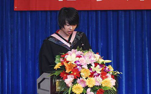 毕业生代表07级商务专业二班的谭亚伟同学深情回顾了在北京师范大学HND中心三年学习和生活的点点滴滴,表达了对母校的深深眷恋之情和对老师们三年来悉心栽培的由衷感谢,表示将牢记母校教诲,在未来人生征途上努力奋斗,为母校争光添彩。