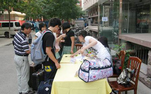 为保*新生报到工作顺利开展,北师大继续教育与教师培训学院HND中心提前专门召开了2010级迎新工作会议。会议对迎新工作各方面都做了周密的安排和部署,并要求接待新生的工作人员细心、严谨,确保新生顺利入学,让新生和家长放心。为节约新生报到时间,学院在兰蕙留学生公寓二楼南侧大厅为同学和家长提供“一站式”报到服务,以便快捷地为学生办理入学手续。