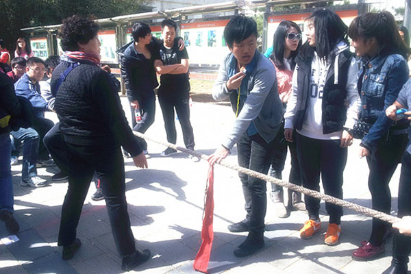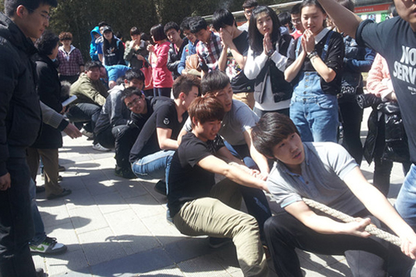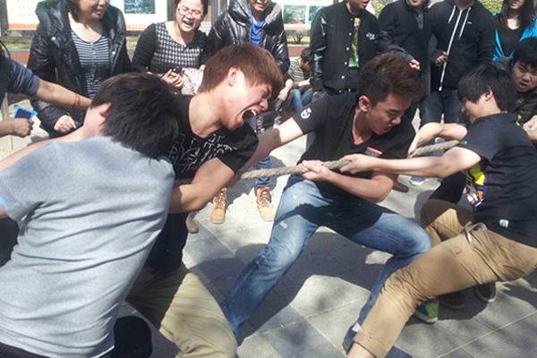 为了丰富学生的课余文化生活,增进学生们之际的交流,培养团队合作能力,北航创管学院学生会于3月27日中午在学院楼前广场举行了一场激烈的拔河比赛,HND的大一大二的同学们和老师们都热情地参与到此次的活动之中。
