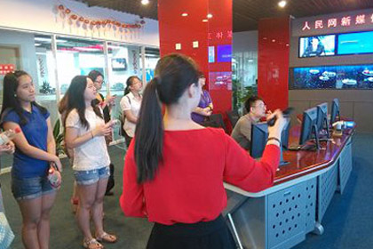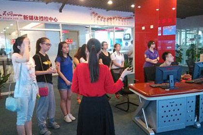 (2013年6月3号)迎着国际儿童节后*一个工作日的一缕晨光,中国传媒大学学生 国际交流部2012级媒体商务班的一群“大孩子”们在学校的组织和老师的陪同下,去《人民日报》“取经”了。作为中国共产党中央委员会机关报的《人民日 报》以它独特的魅力吸引着这群遨游在传媒学海里的学生们。正门卫士值守的严谨,让学生们懂得无论做何种新闻都得以严谨态度对待;60多年印刷厂的沉淀,让 这群孩子们感受到了传媒业的日益兴旺与强大;现场节目的录制,让学生们对自己专业的热爱之情更加高涨;接待人员清晰而又流畅的表达,更是让学生们懂得了什 么是职业素养。