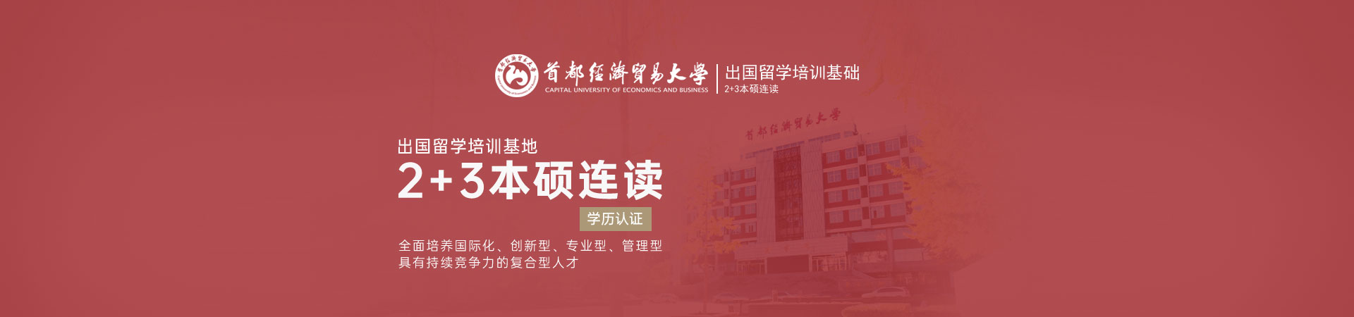 为了满足越来越多的学生出国留学的需求,为学生创建真实、原汁原味西方教育环境,帮助学生快速掌握国外学习方法,提前适应海外生活、缩短留学适应周期,减少昂贵的留学费,使学生在国内就能够享受国外优质教育资源,首都经济贸易大学在中国(教育部)留学服务中心的支持下,与英国、美国、澳大利亚、加拿大等多国名校签署合作协议,开设2+2国际本科课程。学生在首都经济贸易大学通过二年的全日制学习,具备用英语学习专业课的能力,掌握一定的专业理论知识和应用技巧,出国后学生可免修在国内已经修过的学分(最多可豁免 1/3 学分)。