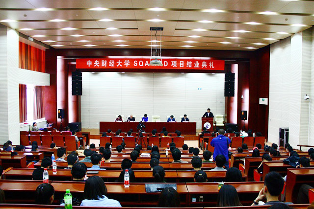 4月25日下午,中央财经大学外国语学院在学术会堂202报告厅隆重举行SQA AD项目2010级结业典礼,留学服务中心主任助理兼国际合作处处长车伟民先生,SQA AD项目负责人贾洪雷先生、贾颖女士,学校继续教育工作管理办公室程占龙副主任,外国语学院王晓红院长、韩兰书记、王刚副院长出席了结业典礼。典礼由外国语学院分管SQA AD项目的王刚副院长主持。