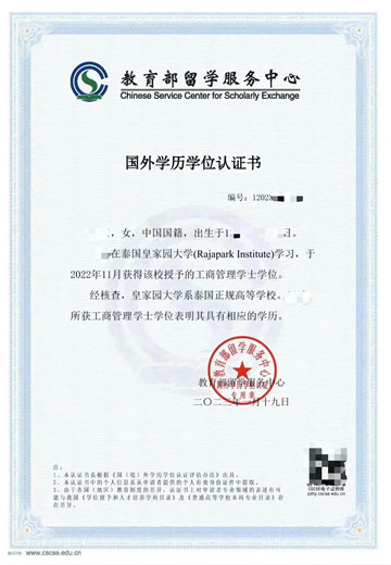 本项目获得中国留学服务中心审批备案。国外合作院校均为泰国批准成立的正规大学。项目学生在国外院校获得的学位证书,回国后可在中国留学服务中心申请认证。