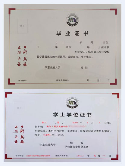 华东交通大学计划内全日制第二学位普通本科毕业证和学位证双证。与计划内统招本科同等性质和享受同等待遇。