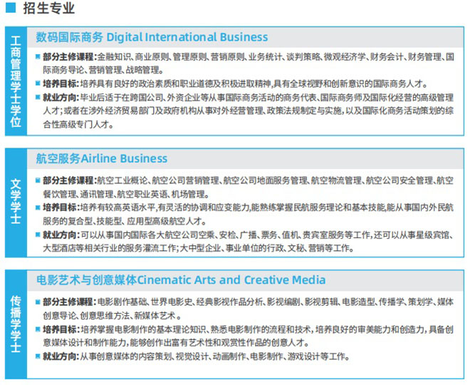 1+3国际本科招生专业: