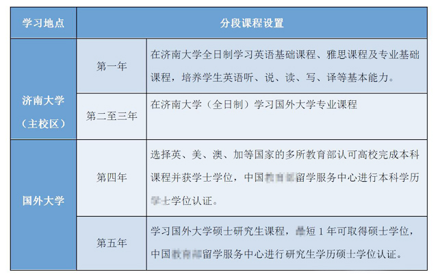 门生在济南大学完成三年课程后,通过申请可进入国外合作大学继承学习,完成学业获得该校本科学位;凭此学位证书可以直接申请攻读研究生课程,完成学业,获得硕士学位。