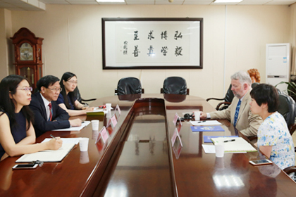 王保贤副校长对Cillian Ryan副校长的再次来访表示欢迎, 并简要回顾了双方就拟开展的中外合作办学机构进行的积极努力。王保贤副校长谈到,济南大学非常重视与英国诺丁汉特伦特大学共同申办中外合作办学机构。期间,双方会遇到各种机遇和挑战。希望两校能携手努力,在正式申请合作办学机构前,积极开展教师、学生交流项目,并探讨双方在对方学校设立项目推进办公室的可能性,为两校下一步的深入合作奠定基础。