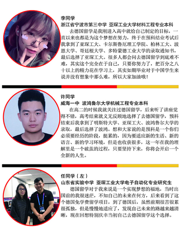 随着工业4.0、新能源、物联网、人工智能时代的到来,先进工业技术越来越受到学生的青睐。在汽车、机械、能源、电子、环境、人工智能等领域,德国的先进工业技术在国际上一直享有美誉,无论是教育的师资力量还是科研实力均属世界一流水平,因此,德国的高等教育极具吸引力。经德国教育*批准,本项目可招收中国优秀高中毕业生,前往德国公立大学的预科学院学习,目前通过此途径进入预科课程学习的学生,在预科毕业后申请到了慕尼黑大学、亚琛工业大学、达姆施特工业大学、卡尔斯鲁厄理工学院等全德国范围内的知名高校。该项目为两国培养更多的既精通德语又掌握专业知识的国际化应用复合型人才提供了便利渠道。