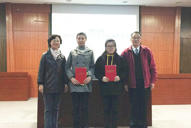 会上,对2015级18位获得学年奖学金的同学进行了表彰并颁发了荣誉证书和奖金。四位优秀学生代表向大家介绍和交流了学习经验和技巧。