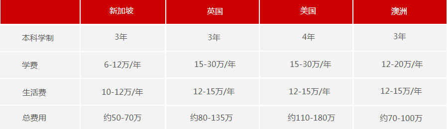 新加坡留学费用