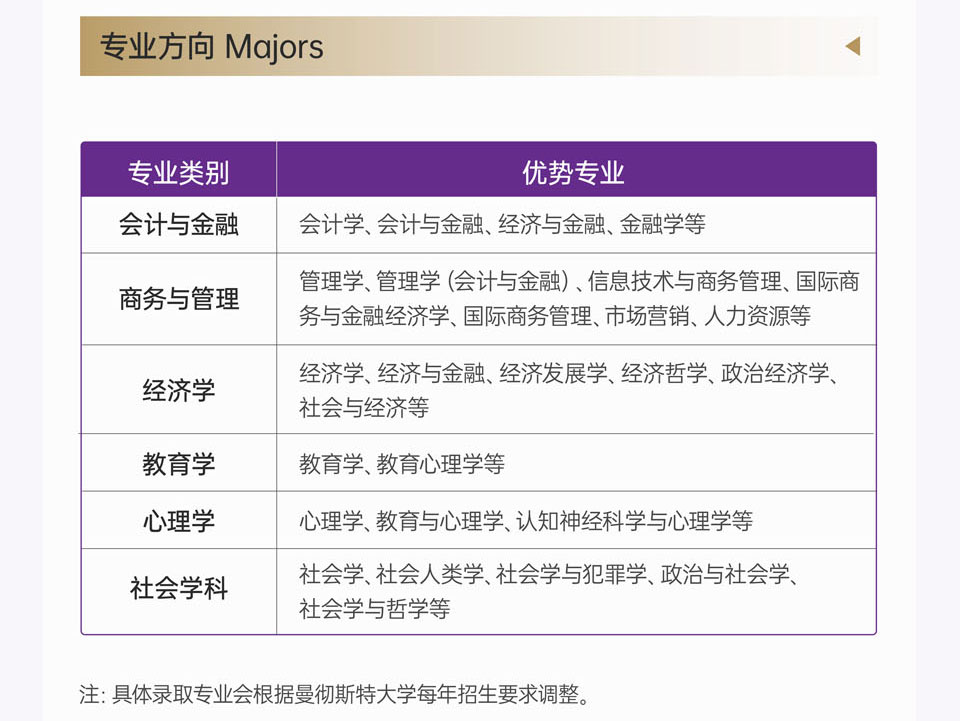 优势专业:商科、艺术