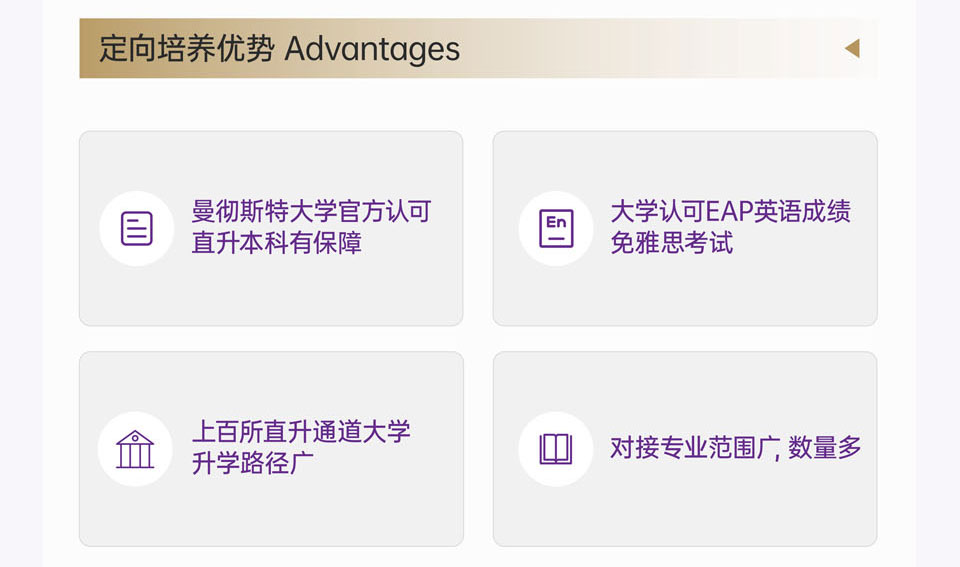 项目优势:校际合作,官方办学,双语教学,雅思强化