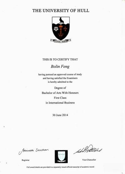 又到了一年一度学生毕业的时间,近日,我们接到了不少来自大洋彼岸学生们传回母校的喜讯。在此,热烈祝贺2010级学生冯柏霖获得英国赫尔大学一等荣誉学士学位。