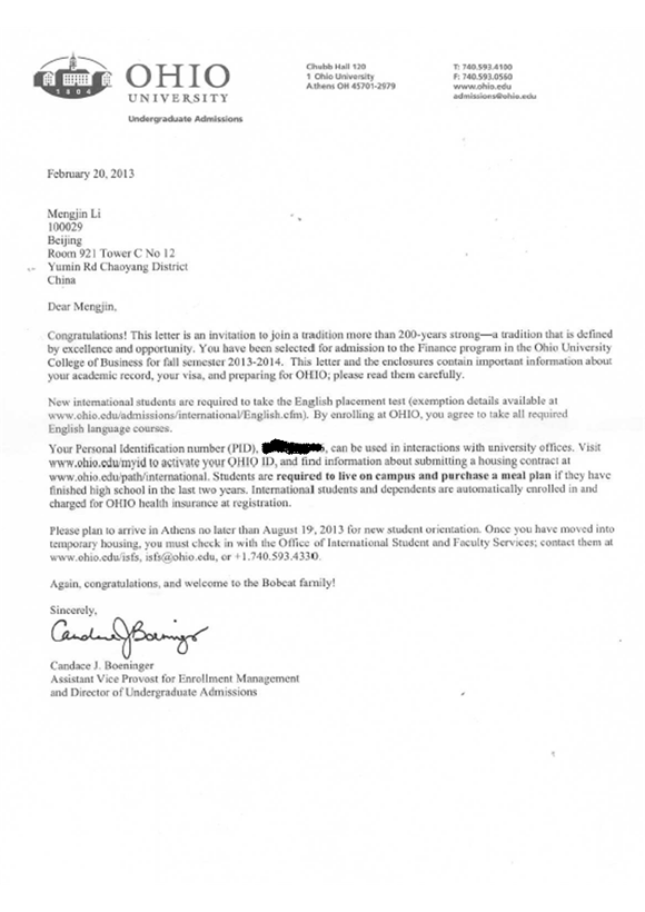李梦今同学是我项目2012级学生,在对外经贸大学信息学院国际课程班学习一年的时间里,经过他不懈的努力,收获了美国俄亥俄大学的OFFER。