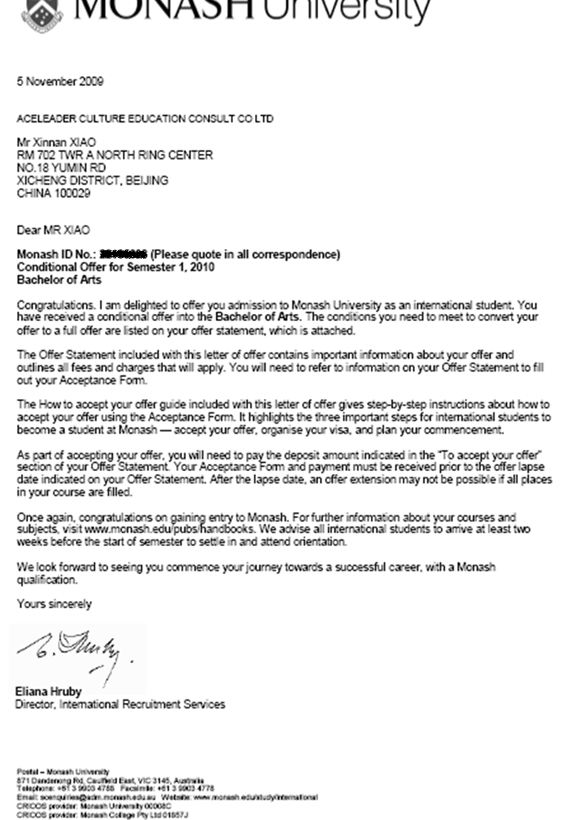 萧新楠同学是我项目2008级学生,经过他在对外经贸大学信息学院出国留学预科班一年的学习提升,收获了澳洲莫纳什大学的OFFER。