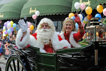 2圣诞老人波在哈罗兹26日一年一度的圣诞节11月5日在伦敦游行的人群。