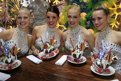 5无线电城Rockettes目前s'mores 2011年11月21日,冻结的热巧克力,他们每年在纽约度假的季节甜点。甜点是曾在一个棉花糖绒毛杯状淋漓,充满14可可混合,淋上蜂蜜全麦饼干屑,小软糖,巧克力酱漩涡,奶油和一个全麦饼干淋上烤棉花糖的cookie伪装 , 巧克力屑,巧克力酱的小雨和无线电城光搅拌器 。