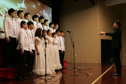 4月7日晚,出国留学培训基地2015--唱出青春,唱出爱"歌咏比赛在培训楼多功能厅举行。此次合唱比赛展现了出国留学培训基地学生饱满的精神状态,激昂的青春活力。教育发展中心副主任、继续教育学院院长马国刚,远程教育学院副院长、教育发展中心工会主席郭成,继续教育学院副院长庞延庆,现代远程教育研究所所长李红燕,俄语外教Lidia,英语外教Steven以及出国留学培训基地近200名师生观看了比赛。