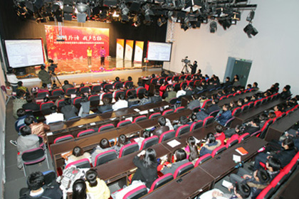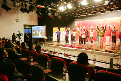 12月24日,国际合作教育2010“激情外语  我声飞扬”圣诞联欢会在电教楼一层教学演播室举行。教育发展中心主任、远程与继续教育学院院长齐高岱观看了演出并讲话。