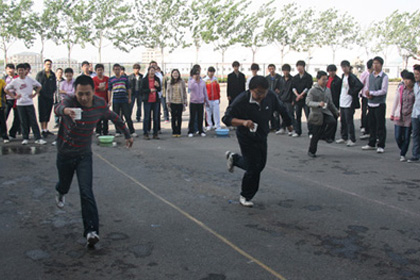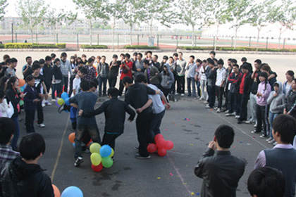 本次趣味运动会包括"集体穿越"、"丛林奔跑"、"巧走梅花桩"、"踩气球"、"抱抱团"等五个项目,经过激烈角逐,2010级俄语留学预科班取得了团体项目冠军,田甜、毛歆慧等同学获得了个人项目冠军。