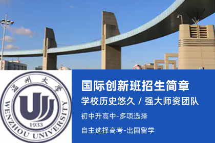温大国际创新班采用双轨制,可以选择出国也可以选择以社会青年身份参加高考,进行高素质综合培养不仅学习高中文化课更是学习礼仪、文化等素质课程。