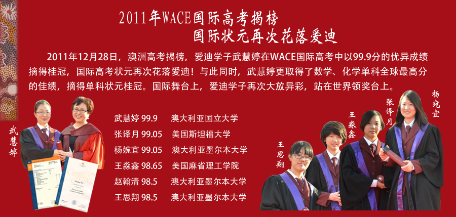 2011年WACE国际高考揭榜 国际状元再次花落爱迪