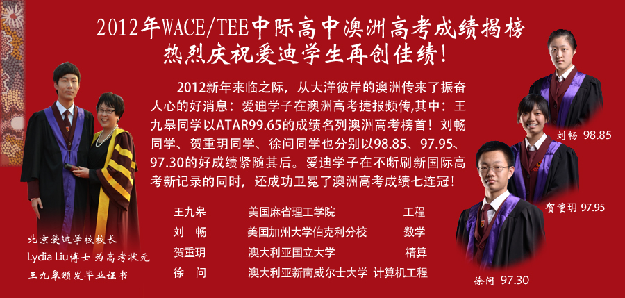 2012年WACE/TEE国际高中澳洲高考成绩揭榜礼