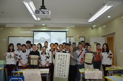 上午9:30 ,欢迎仪式在中学部二楼中厅热烈举行,中英两国学生互相介绍了各自的学校概况,表达了亲切的祝福并结成了友好对子。随后,交流团成员在接待人员的陪同下分进6个班,开始了文化课的观摩。