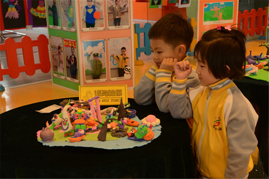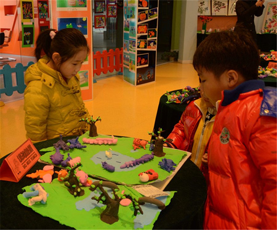 一进画展中心,小朋友们就被哥哥姐姐们惟妙惟肖的作品吸引了:栩栩如生的飞龙、憨厚可爱的小熊、色彩缤纷的彩蛋,充满童趣的泥塑……小朋友们驻足参观,啧啧称奇。老师们细致地给小朋友们讲解各种作品的制作方法,小朋友们听得津津有味,也跃跃欲试想要尝试一番。