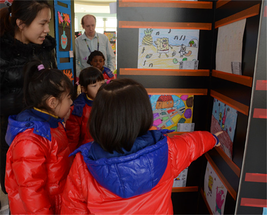 1月7日,阳光明媚,天朗气清。爱迪幼儿园的小朋友们在老师的带领下走出教室,大手牵小手,一起来到爱迪招生办大厅,参观小学部同学的艺术作品,感受艺术的魅力。