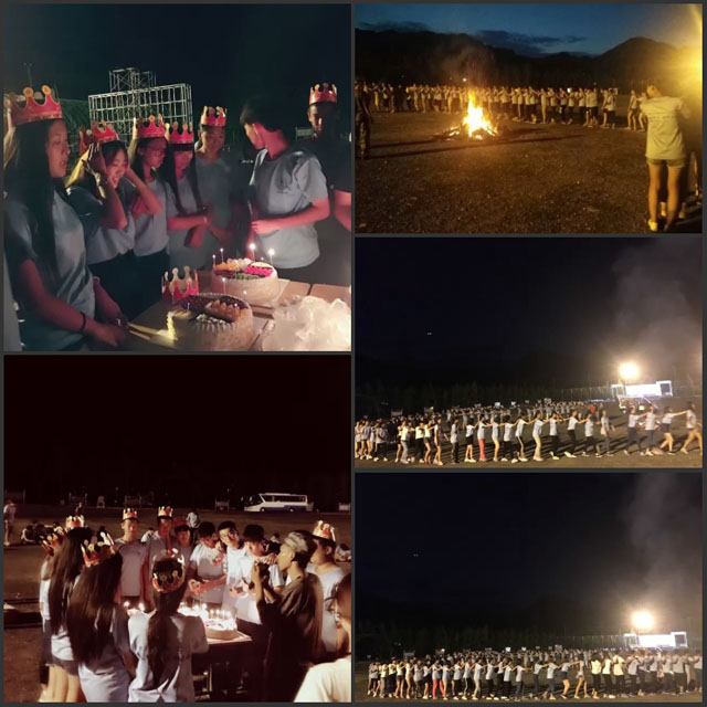 在这短短的7天中同学们积累了深厚的友谊,为了让我们的同学更好的融入我们的大家庭,我们在部队给我们的同学们过了一个集体的生日,更让我们所有的同学感受家庭party的快乐,这次的篝火晚会让我们的心更近了一步。