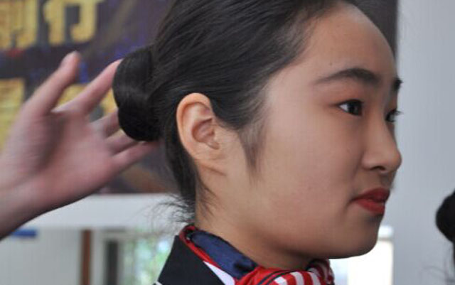 接下来,是将盘发,化妆充分展现的礼仪展示,