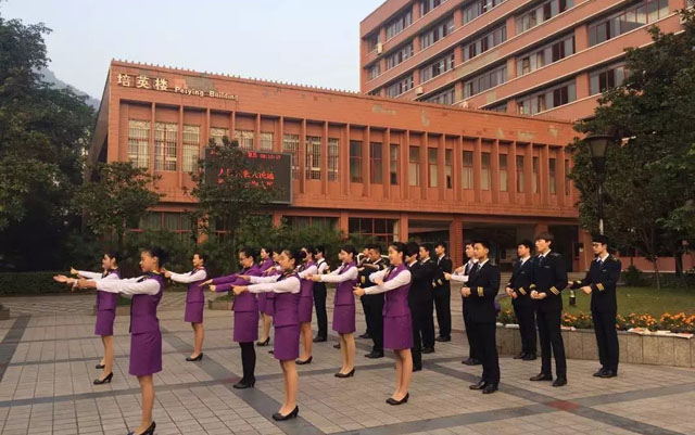 首创“语言特色教育”与“航空服务职业技能培养”的完美融合:除航空服务技能课程外,所有学员用两年时间按四川外国语大学英语专业基础段人才培养方案的主干课程设置学习英语,另选学一门以口头交流为目标的第二外语,全力打造航空服务界的“国际之星”。