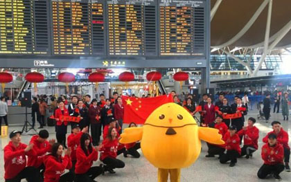 民航资源网2017年1月20日消息:1月20日,距春节长假还有一周时间,在浦东机场即将迎来春运出港客流高峰之际,一场别出心裁的时尚“快闪”活动在浦东机场2号航站楼出发大厅内上演,为踏上旅途的旅客送上热情洋溢的新年祝福,也拉开了空港社区青年春运联合志愿服务的序幕。
