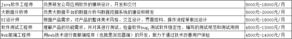 GDZJ1010 | 软件工程 | JavaEE+大数据 JavaEE+测试 | 模块一:公共基础文化课 模块二:编程技能课 | 技能提升课 模块三:职业素养课 模块四:黄金业务模块 | Java软件工程师 项目经理(PM) 产品经理 DBA级别数据库工程师 大数据分析师 软件测试工程师 | 1.5年 | 9800元 |