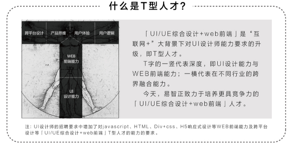 GDZJ1011 | UI设计 | UI+web前端 | 模块一:公共基础文化课 模块二:编程技能课 模块三:职业素养课 模块四:黄金业务模块 | UI设计师 平面设计师 网页设计师 前端工程师 前端交互体验设计师 | 1.5年 | 9800元 |